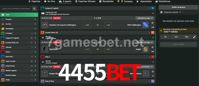 O 4455Bet oferece uma grande seleção de opções de apostas em e-sports com probabilidades competitivas